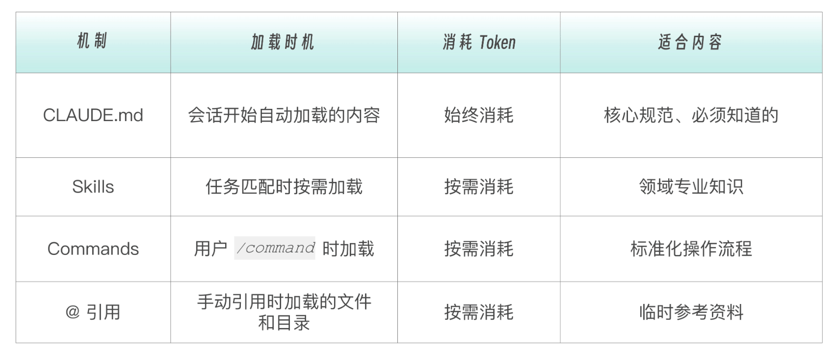 CLAUDE.md 的内容在每次开始新对话时都会加载,所以要精简,把 “每次都需要” 的内容放在这里,把 “偶尔需要” 的内容放到 Skills 或文档里。